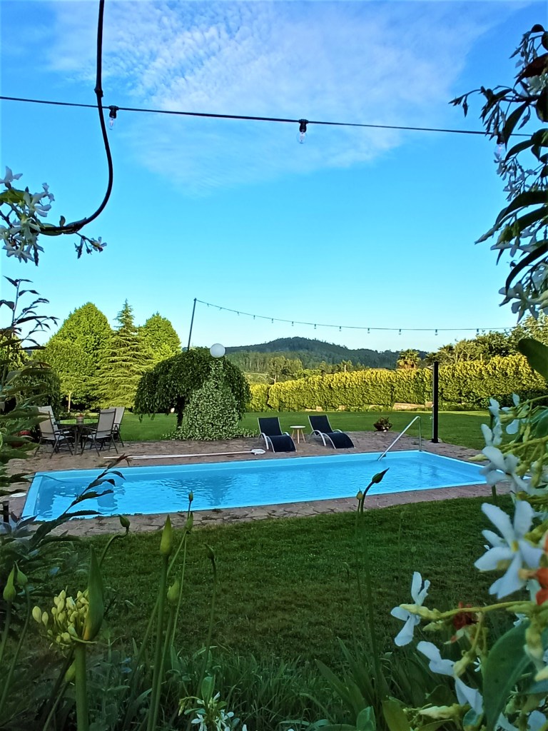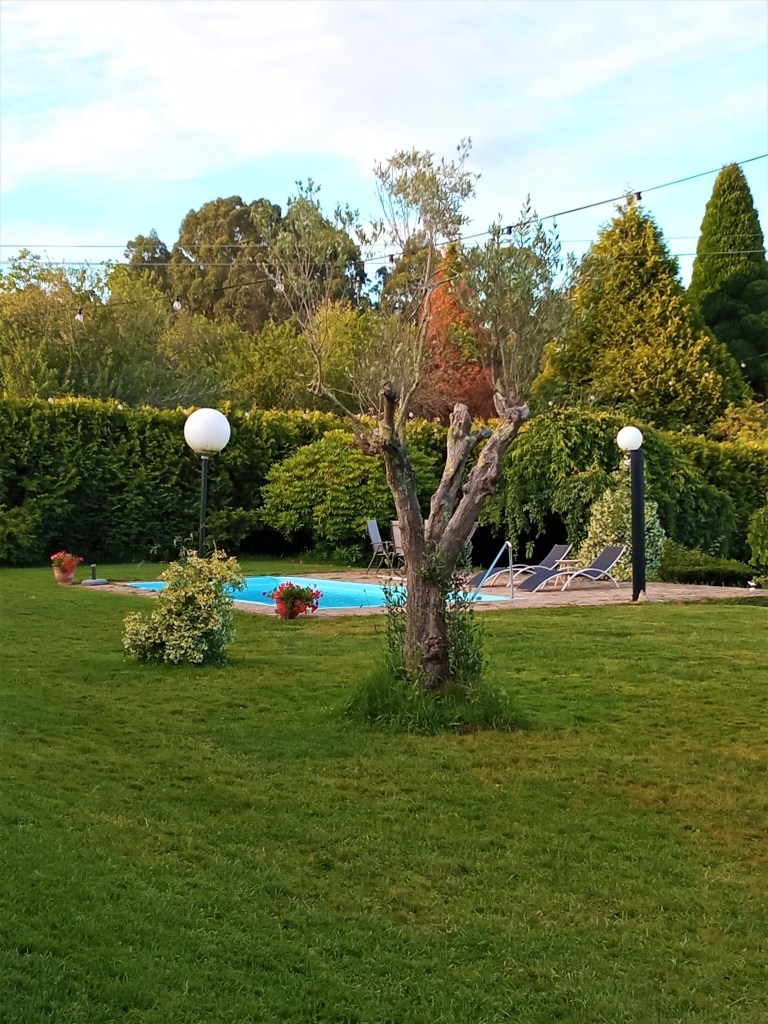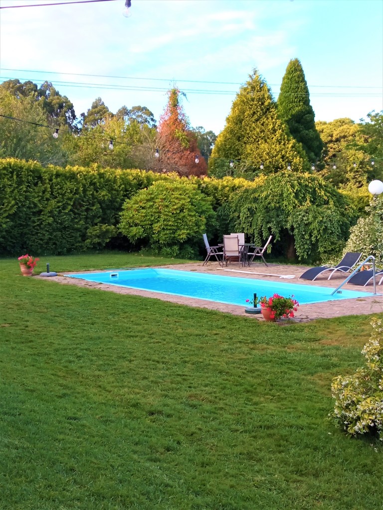 Para la boda de este fin de semana: Piscinita en perfecto estado, flores a gogó, hierba terciopelo verde y, sobre todo, ganitas de llenar todos los rincones de fiesta.